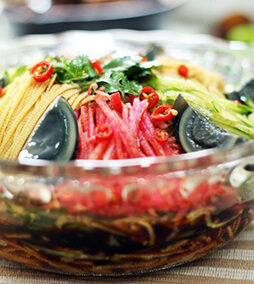 无论“单盘”、“双拼”还是“什锦拼盘”,都必须根据原料的原有形态,以及经过刀工处理的块、片、条、丝等不同形状适当使用。外卖大拌凉菜烹调更为简便,除了食材之外,酱料的调配也很重要。