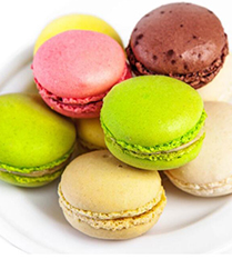 马卡龙(法语:Macaron,法语发音:[makaˈʁɔ̃]),又称作玛卡龙、法式小圆饼,这是一种用蛋白、杏仁粉、白砂糖和糖霜所做的法式甜点,通常在两块饼干之间夹有水果酱或奶油等内馅。它的由来可追溯至19世纪的杏仁小圆饼;这种甜食出炉后,以一个圆形平底的壳作基础,上面涂上调合蛋白,最后加上一个半球状的上壳,形成一个圆形小巧甜点,呈现出丰富的口感,是法国西部维埃纳省最具地方特色的美食,这种点心也在法国东北地区偶尔可见。