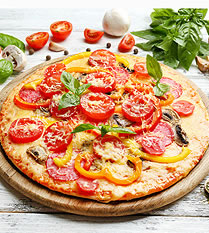 披萨是一种颇受欢迎的烤制食品,通常做法是用发酵的圆面饼上面覆盖番茄酱、奶酪和其他配料,并由烤炉烤制而成。